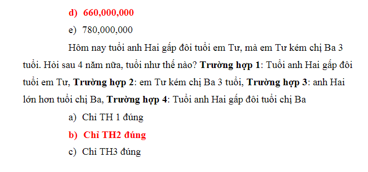 3. Chị gái Thư của tôi nói rằng trong 2 năm nữa tuổi của chị sẽ gấp đôi số tuổi của chị cách đây 4 năm. Hỏi chị gái Thư năm nay bao nhiêu tuổi?