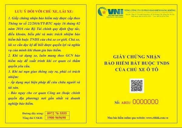 Bảng tính chi phí mua bảo hiểm TNDS cho xe ô tô ở Việt Nam