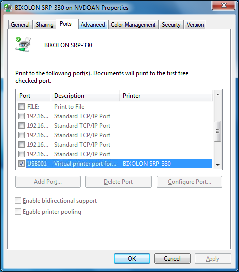 6.3. Nhấn vào Ports và chọn lại cổng kết nối đang cắm máy in.