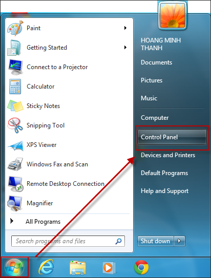 3.1. Nhấn Start\Control Panel.