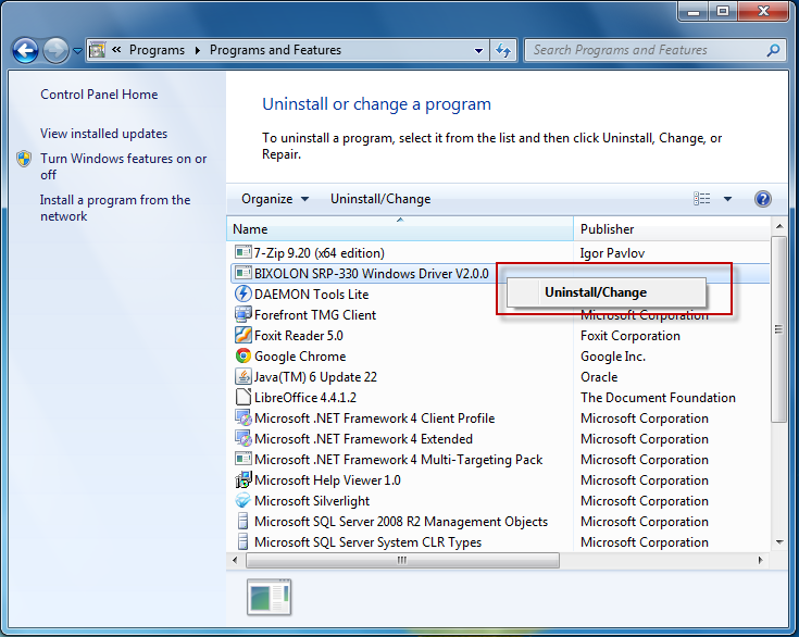 3.3. Nhấn chuột phải vào driver của máy in, chọn Uninstall/Change.