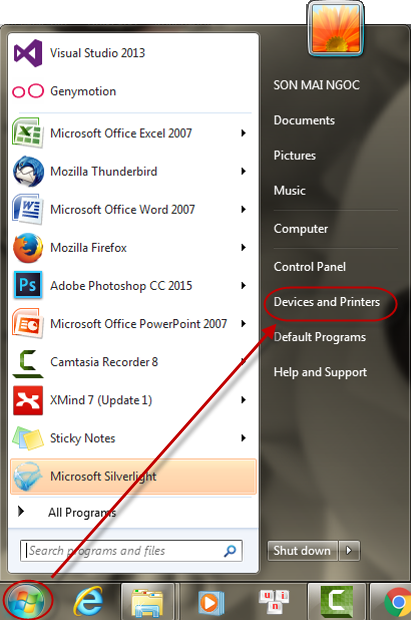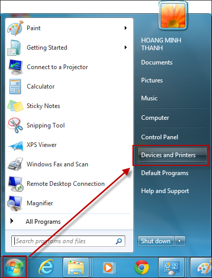 2.1. Nhấn vào Start\Devices and Printers.