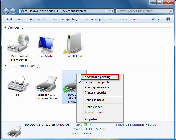 2.2. Nhấn chuột phải vào máy in cần sử dụng, chọn See what’s printing.