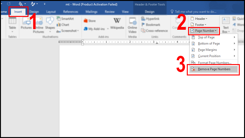 - Nhấp đúp vào vị trí bất kỳ trên trang bạn không muốn đánh số và nhấn Delete để xóa bỏ.