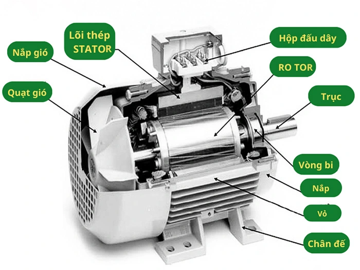Động cơ điện 3 pha là loại động cơ cảm ứng (induction motor) phổ biến nhất trong công nghiệp.