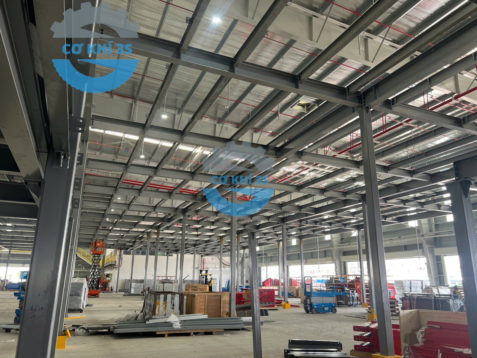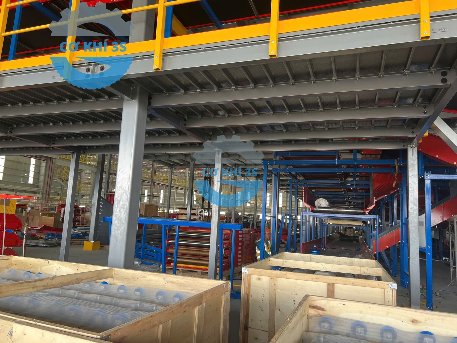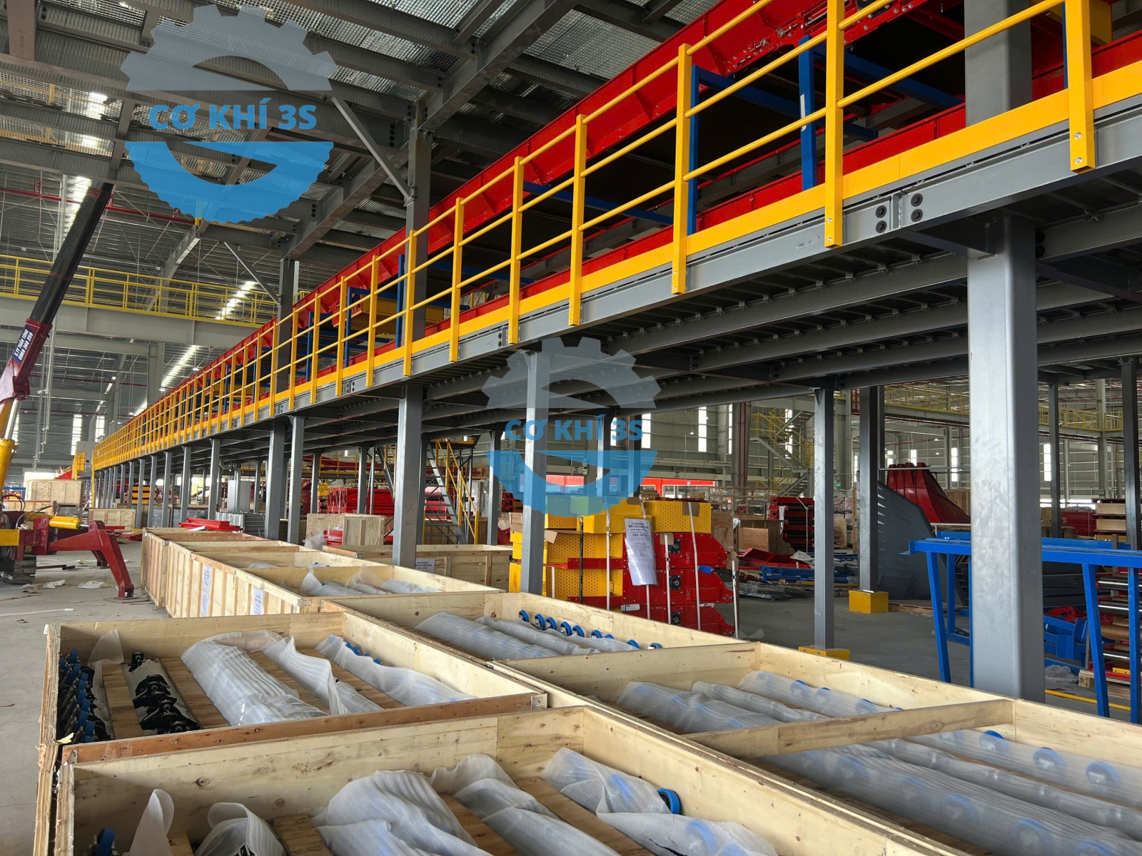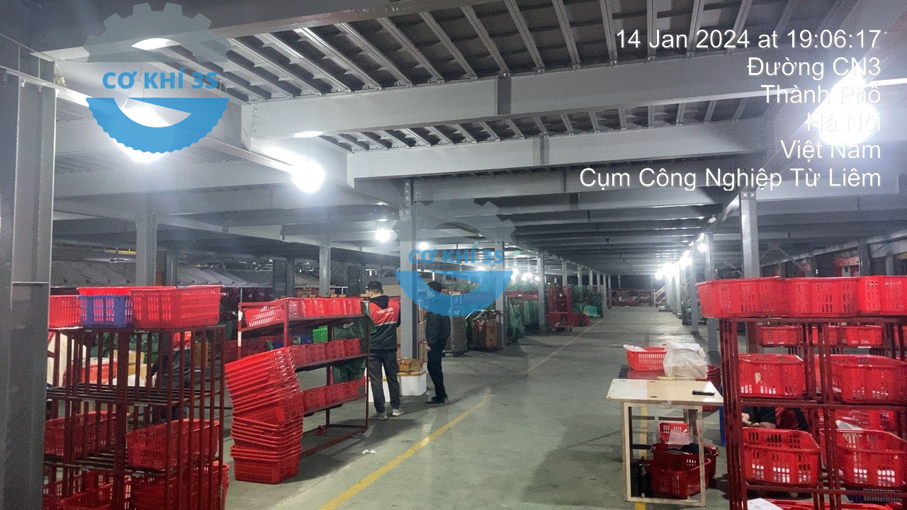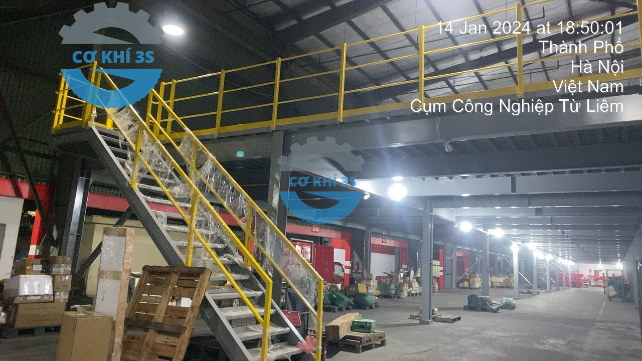 Là đơn vị chuyên giao nhận vận chuyển hàng hóa lớn tại Việt Nam, Giao Hàng Nhanh đã từng bước phát triển với hệ thống các kho vận cỡ lớn với nhà kho xưởng lưu trữ vận hành chuyên nghiệp tại các kho lớn như Hưng Yên, Bắc Ninh…Thi công sàn gác lửng giá kệ sàn mezzanine khung thép kết cấu lắp dựng thi công trong vòng gần 2 tháng( hệ thống băng chuyền tải và phân loại hàng hóa riêng không tính tới) thì tổng khối lượng lắp dựng sàn lửng với cả thép tôn nhám đi lại kéo xe nâng tay trên mặt sàn tải trọng 500-800kg/m2 là khoảng 3000 tấn thép. Khung thép sàn thao tác được làm từ vật liệu thép tấm SS400 , chân cột thép hình …các tấm sàn đi lại lắp ghép bằng kẹp chuyên dụng( sử dụng thời gian dài với xe nâng tay kéo hàng không bị cong vênh hay xô lệch biến dạng).
