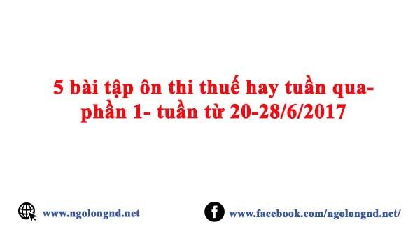 Gứi tới các bạn 5 bài tập ôn thi thuế hay tuần qua- phần 1. Lời giải chỉ mang tính chất tham khảo nhé các bạn. Các câu trắc nghiệm khác các bạn search ở ô tìm kiếm hoặc xem ở đây. Các bạn cũng nên xem qua kinh nghiệm ôn thi ở đây.