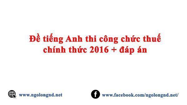 Đề tiếng Anh thi công chức thuế chính thức 2016 + đáp án . Do có một số bạn nhớ được 1 phần đề thi tiếng Anh công chức thuế chính thức ngày 23/7/2017 trùng với trên mạng ở 1 website đã đăng năm 2012 nên mình post lại phần trùng đang được chia sẻ này bao gồm cả đáp án. Trên các facebook cá nhân hiện cũng có nhiều share , điển hình như sáng nay mình vừa tình cờ thấy 1 ảnh này trên newfeed nên copy lại mọi người xem qua: