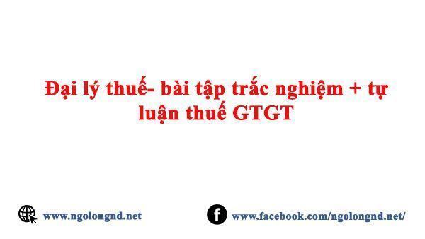 Đại lý thuế- bài tập trắc nghiệm + tự luận thuế GTGT- Về thuế Giá trị gia tăng- có một số có đáp án gửi tới cả nhà ôn thi đại lý thuế 2018 vào tháng 3 cho tốt.