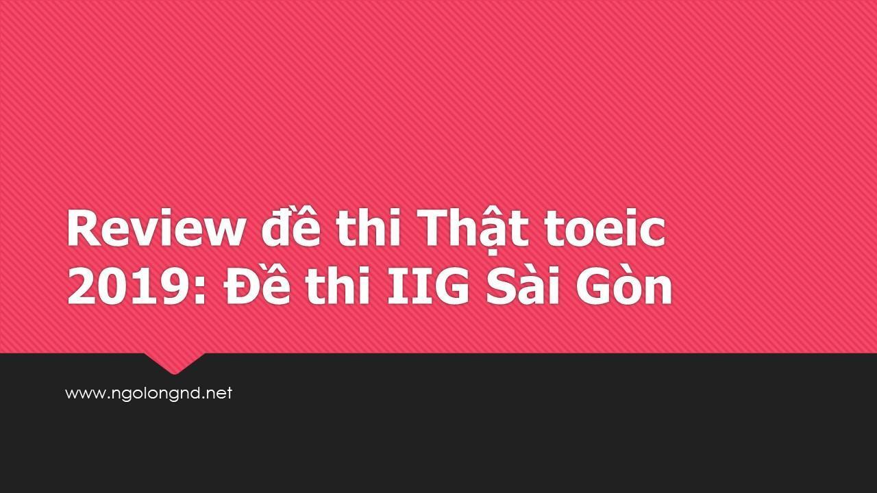 Review đề thi Thật toeic 2019: Đề thi IIG Sài Gòn. Review đề thi Thật toeic 2019: Đề thi IIG Sài Gòn. ĐỀ THI THẬT CHIỀU NAY tại IIG Tphcm phòng 7.1 (lầu 7). Giống đến 99%. Mã Đề: S22 ..