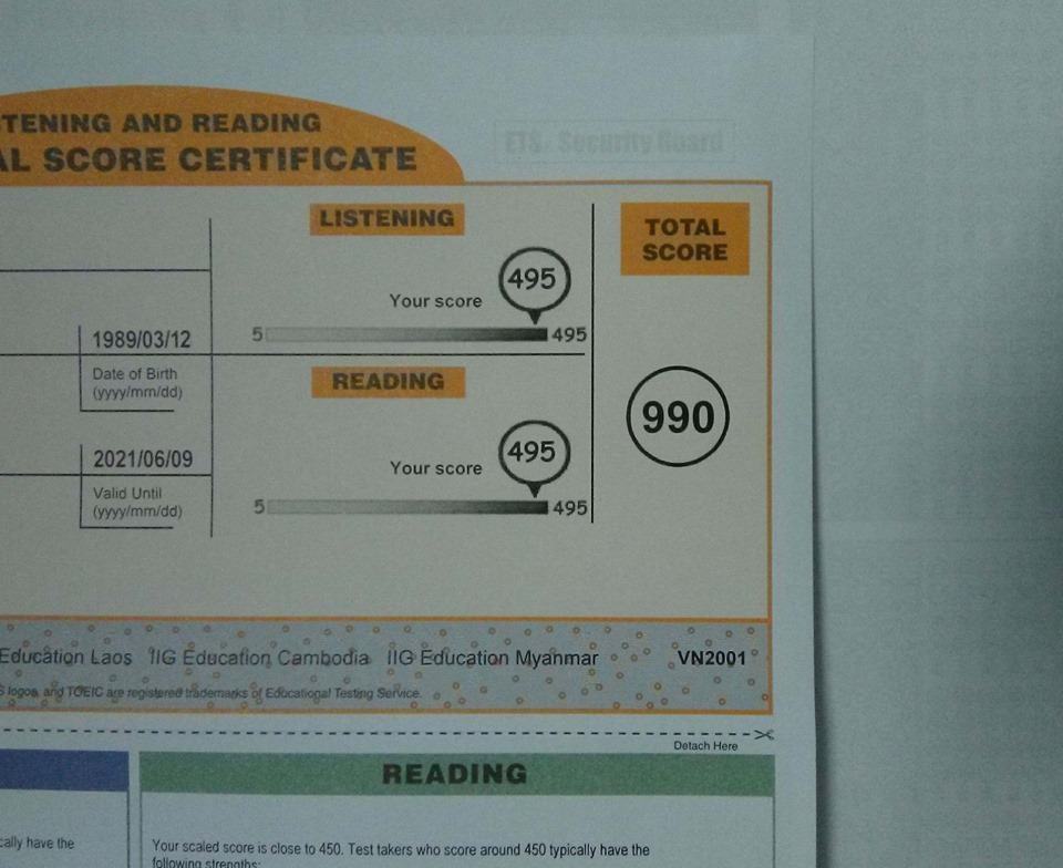 Nếu chỉ nhìn vào điểm số 990 và 3 tháng ôn luyện, có thể một số bạn cho rằng sao mình tăng điểm dễ vậy, có mẹo gì đây? Câu trả lời là gần như chẳng có mẹo gì cả. Trước khi ôn thi TOEIC mình đã có 2 năm học ngữ pháp, từ vựng, luyện phát âm, sử dụng tiếng Anh trong công việc… và trước khi ôn TOEIC mình thi thử được 800 theo format cũ.