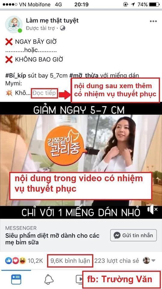 Thu hút họ chú ý xong rồi muốn rớt comment hoặc inbox thì phần nội dung thuyết phục phải tốt : đó là phần content sau chữ « xem thêm » , Nội dung ảnh, video…(minh họa ở ảnh 3).