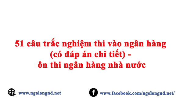 51 câu trắc nghiệm thi vào ngân hàng (có đáp án chi tiết) – ôn thi ngân hàng nhà nước 2020. Đây là một phần trong các tài liệu của mình gửi tới các bạn!