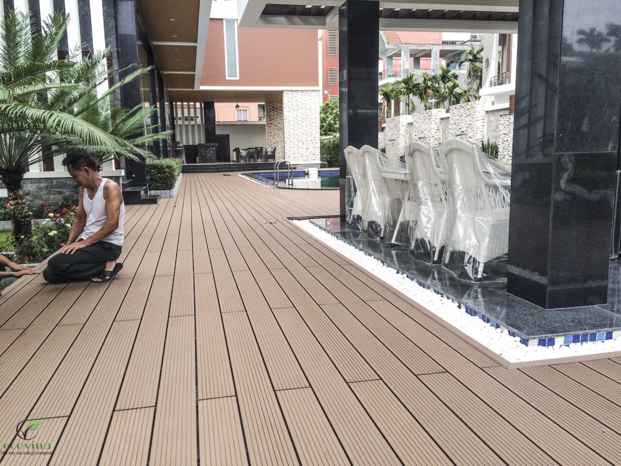 Thi công sàn gỗ nhựa composite ngoài trời ở đâu uy tín? Lắp đặt sàn gỗ nhựa composite ngoài trời sẽ làm cho không gian nhà bạn trở nên sang trọng, đẳng cấp hơn. Trông không khác gì những hình ảnh bạn thường thấy ở những biệt thự Châu Âu. Khi lắp đặt sàn gỗ ngoài trời ngoài việc quan tâm đến chất lượng, màu sắc cho phù hợp với thiết kế thì tuổi thọ cũng là một yếu tố vô cùng quan trọng. Tuổi thọ của sàn ngoài trời phụ thuộc rất nhiều vào chất lượng thi công lắp đặt. Vậy quá trình thi công sàn gỗ nhựa composite ngoài trời có khó không? cần quan tâm đến kỹ thuật nào? Ngay sau đây Ngolongnd.net sẽ chia sẻ đến bạn về quá trình thi công của sàn gỗ nhựa composite.